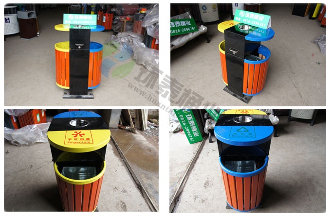 鋼木垃圾桶HT-GM6490,該產(chǎn)品整體采用優(yōu)質(zhì)的冷軋鋼板,鍍鋅鋼板,防腐木生產(chǎn)加工而成,產(chǎn)品顏色為:黃/藍色+原木色,規(guī)格為長680mm寬400mm高1000mm,本款雙色分類鋼木垃圾桶制造工藝采用:1、鋼木垃圾桶桶身采用優(yōu)質(zhì)進口防腐木、進口山樟木或水曲柳制作,先經(jīng)過烘干脫水、壓刨、打磨、倒角、防腐處理后表面噴涂進口抗紫外線聚脂漆等工序,再經(jīng)高溫噴塑處理,可抑制微生物的寄生、繁殖與蛀蝕,具有防水、防霉等保護功效,能夠抑制霉菌和藻類生物的生長,可有效減少紫外線導(dǎo)致的褪色,延長木材在戶外環(huán)境中的使用壽命.客戶也可以采用塑木代替實木.2、鋼木垃圾箱采用鍍鋅鋼板材質(zhì)制作,鋼結(jié)構(gòu)均經(jīng)過酸洗、磷化表面處理,然后再使用高溫噴塑工藝,使垃圾桶更加經(jīng)久耐用,防腐、防銹,美觀大方.3、鋼木果皮箱采用內(nèi)部膨脹螺栓固定的方式,不易推到,不易被偷盜,使垃圾桶更加安全牢實.隱形固定還可以防止撞傷行人.